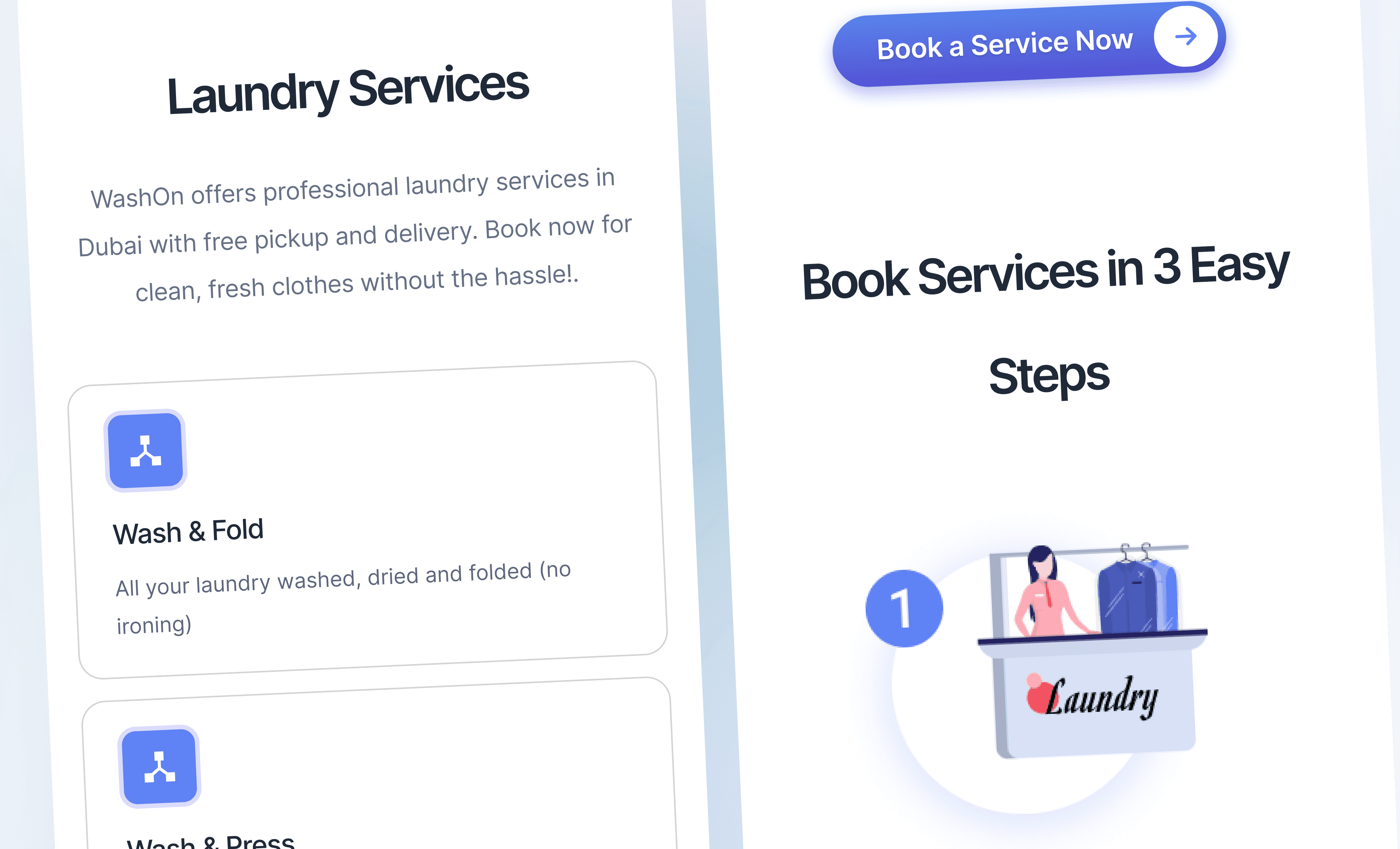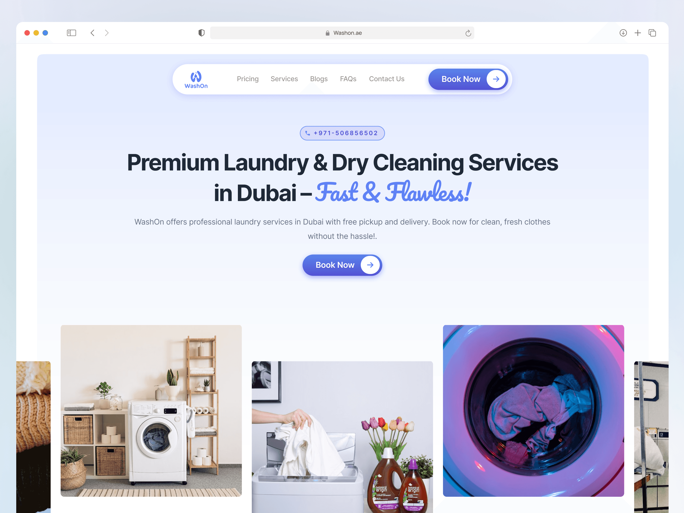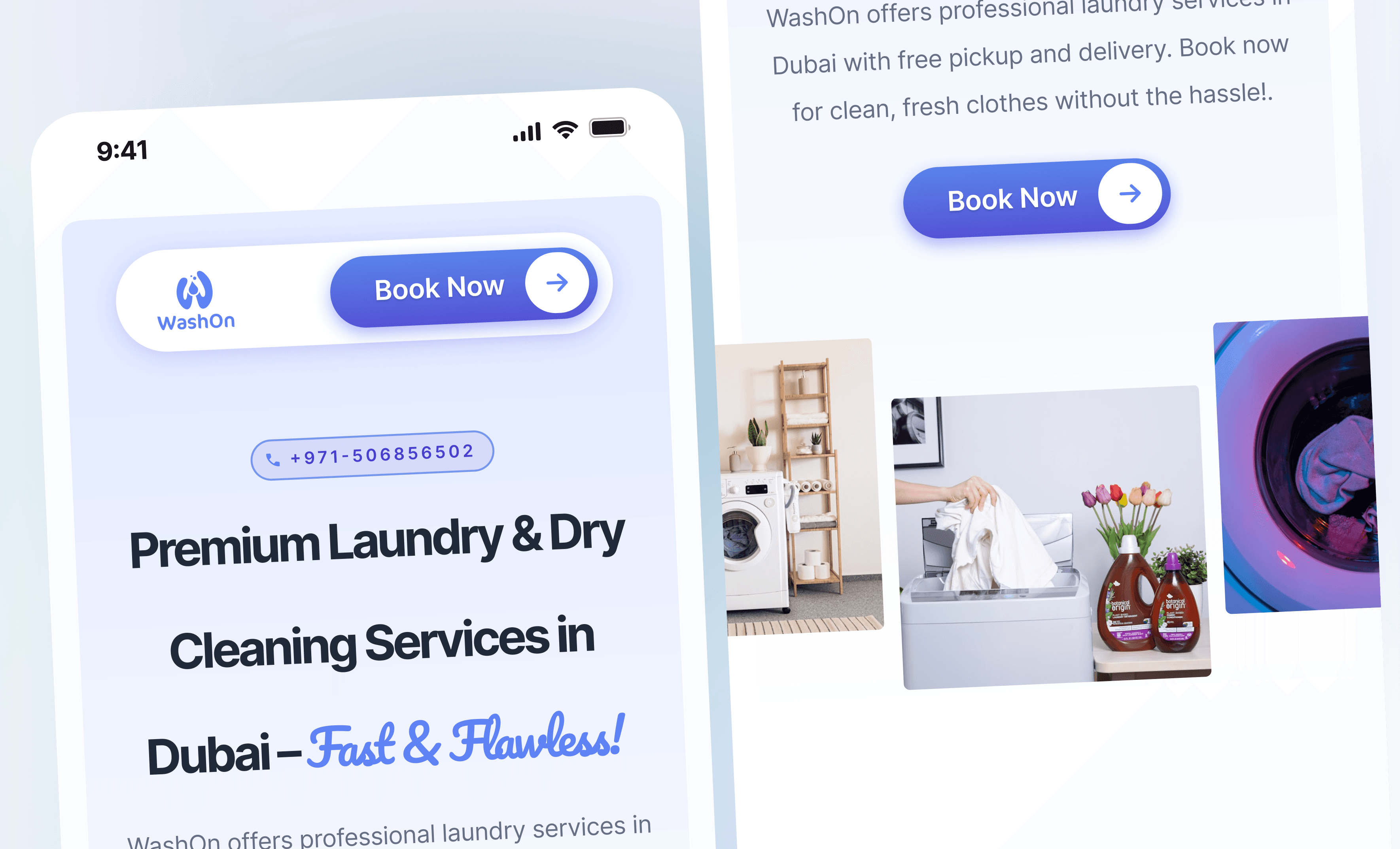 With a strong brand identity, improved page speed, and SEO-friendly structure, this redesign positions Washon as a leading digital-first laundry service in Dubai.